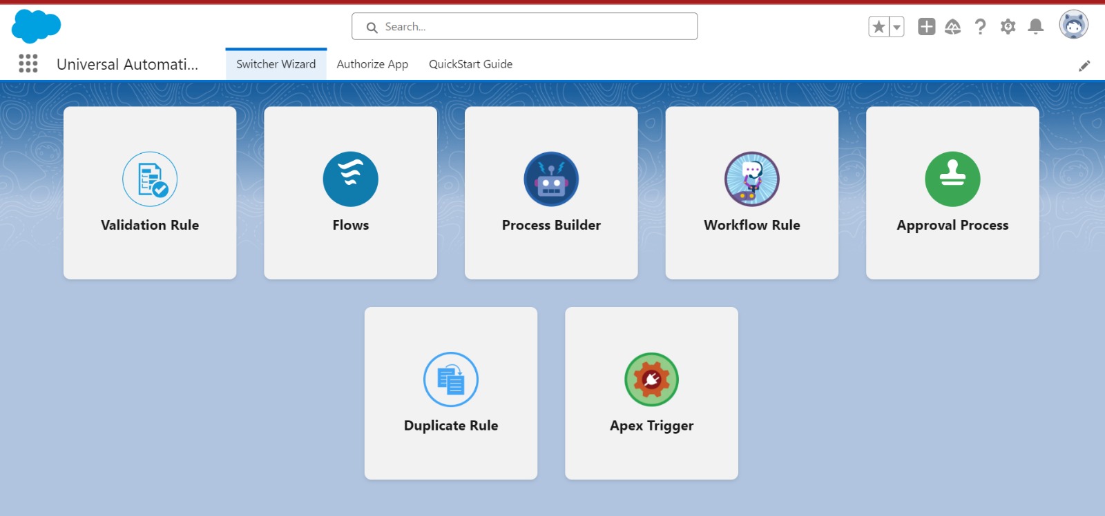The definitive control panel for all your Salesforce automation. Toggle flows, process builders, validation rules, and workflow rules — individually or in bulk — without touching Setup.